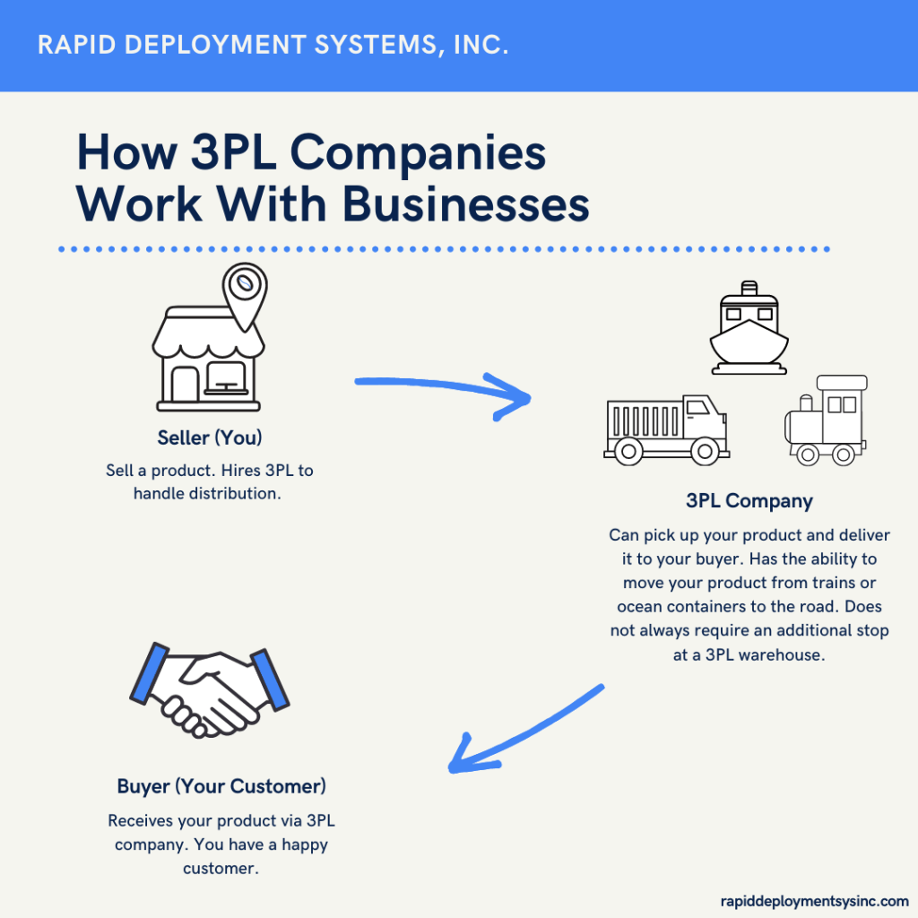 The graphic below shows where a 3PL company steps in during the process of working with you and your product.